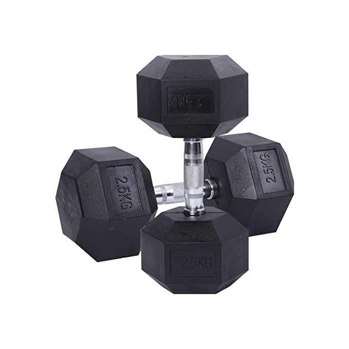 Pair of 2.5kg Hexagonal Rubber Dumbbells – Perfect for Resistance Training